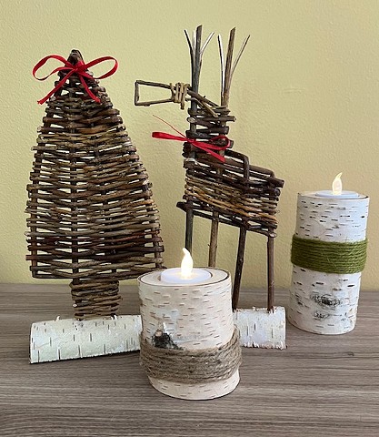 Birch bark log candles with tea light